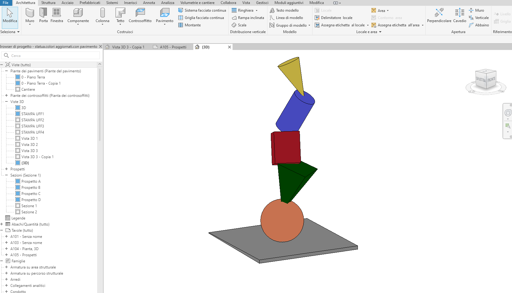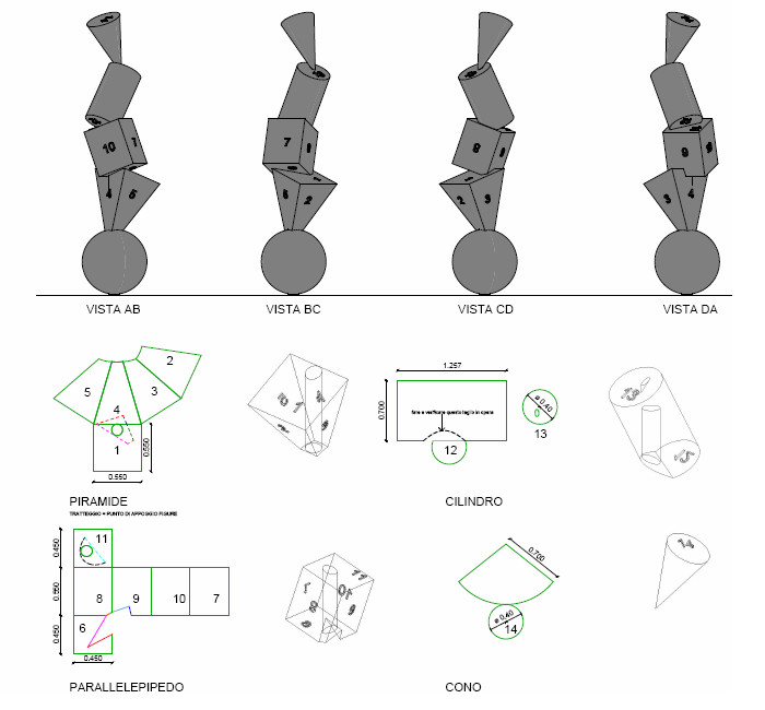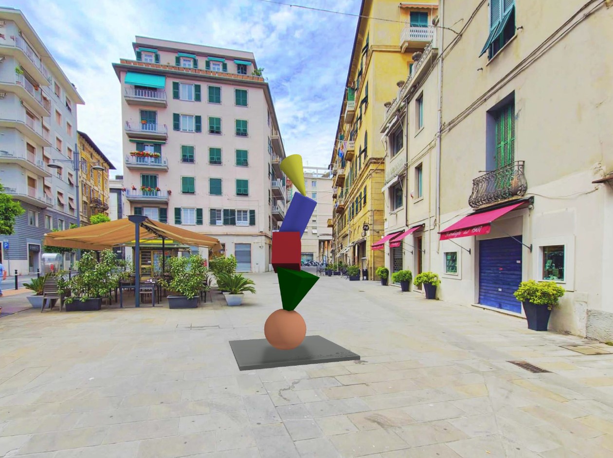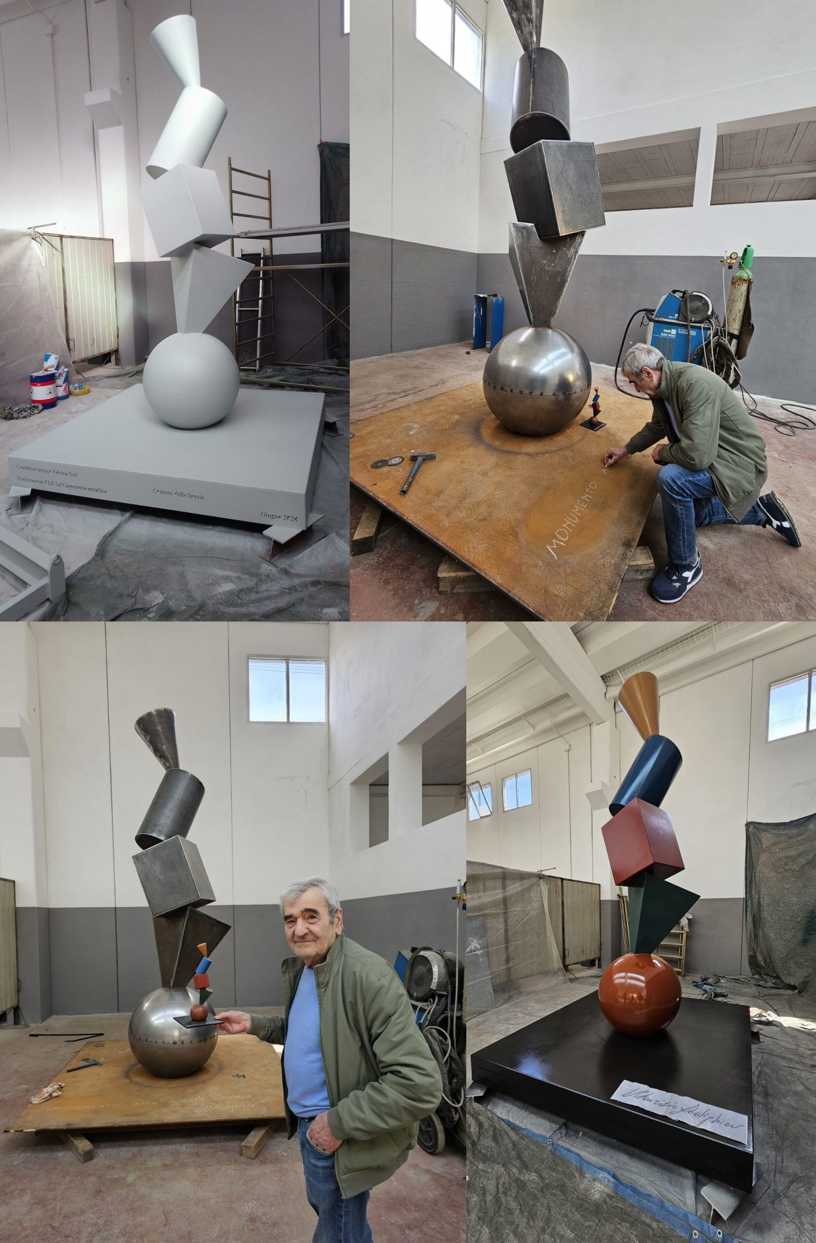 Grazie a queste tecnologie avanzate, il bozzetto è stato convertito in un modello tridimensionale. L’opera, caratterizzata da forme geometriche semplici sovrapposte e incastrate tra loro, è stata modellata digitalmente. Le singole forme sono state parametrizzate, consentendo una gestione precisa delle loro dimensioni e delle rotazioni sui tre assi. Questi elementi geometrici semplici sono stati successivamente aggregati sotto la supervisione dell’artista, ottenendo un modello tridimensionale parametrico dell’opera.