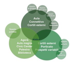 Alla scuola ed alla sua vocazione di polo civico viene dato il compito di produrre opportunità, interazioni e convivenze, offrendo un luogo condiviso di confronto dove creare possibilità di scambio e di crescita culturale, sociale e democratica. In un tale contesto è essenziale sviluppare al meglio la capacità di incarnare il luogo dell’educazione “positiva”, dello scambio culturale, e di promuovere la condivisione ed il sentire sociale anche attraverso l’uso e la compartecipazione degli spazi che essa offre: in primo luogo educativi poiché proprio le esperienze educative più riuscite sono quelle determinate dall’ambiente in cui si compiono e dalla qualità dello spazio in cui si svolgono.