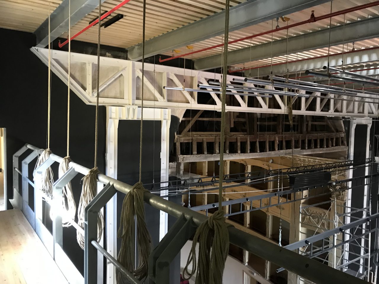 L’intervento di maggior rilevanza e pregio strutturale è consistito nella realizzazione della struttura reticolare a sostegno della nuova graticcia in legno, composta da due elementi verticali a traliccio, ancorati efficacemente al muro di boccascena senza inficiarne le capacità portanti e da una trave reticolare del tipo Mohniè, che riceve le travi IPE300 porta-graticcia; queste ultime, collegate al nuovo cordolo esterno in acciaio costituiscono un valido vincolo al ribaltamento dell’imponente muratura di fondo della torre scenica, che si erge per un’altezza di circa 17 metri senza solai intermedi.
