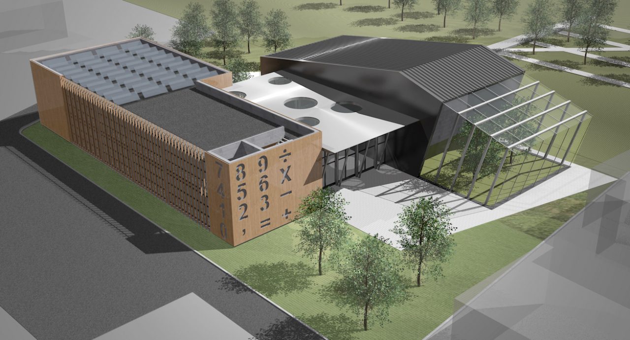 In particolare i luoghi canonici dell’edificio scolastico e della didattica tradizionale – aule, corridoi, servizi, ecc. – diventano in questo progetto permeabili verso l’esterno grazie alla riconfigurazione dello spazio centrale dell’atrio, svuotato nelle sue parti in muratura per permettere l’accesso anche dalla parte opposta a quella attuale per relazionarsi maggiormente con la parte centrale del campus; grazie alla collocazione di uno spazio completamente trasparente – la serra – al posto dell’attuale palestra, il cui perimetro si rarefa in avvicinamento alle aree verdi all’aperto e che si caratterizza per un uso condiviso con gli altri istituti presenti nel campus, in particolare l’istituto agrario, per il quale rappresenta un elemento didattico fondamentale.