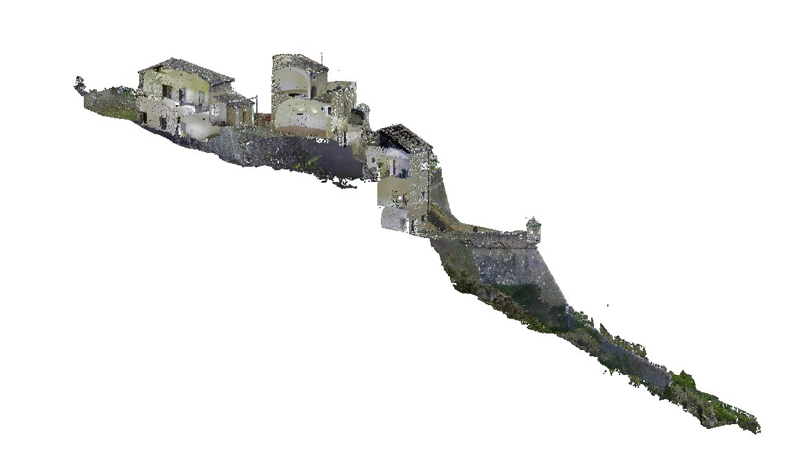 Il pre-allineamento automatico delle scansioni viene perfezionato e verificato, la nuvola di punti viene ‘ripulita’ e ‘decimata’ in funzione degli obiettivi ed il rilievo viene georeferenziato sulla base dei punti GPS acquisiti.