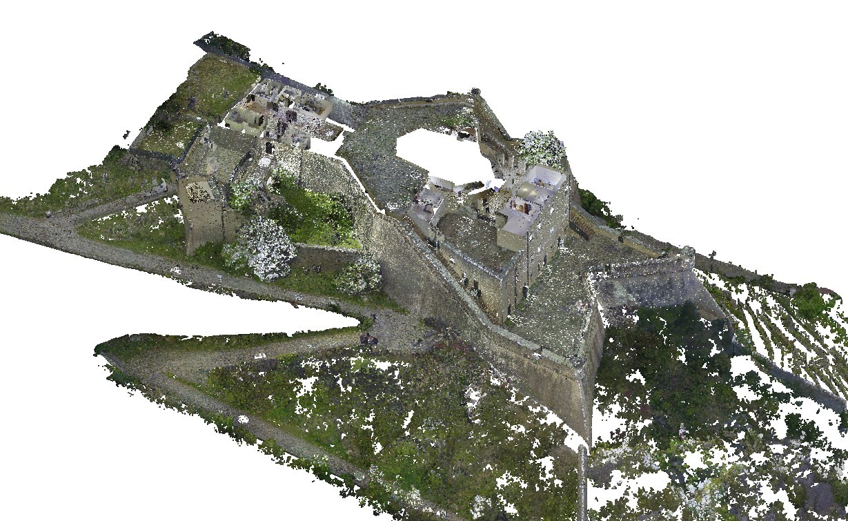 Il rilievo di Forte San Giovanni richiede l’utilizzo combinato di più strumenti: il Laser Scanner a postazione fissa RTC360 per l’acquisizione degli interni e delle terrazze ed il Laser Scanner Leica BLK2FLY per il rilievo delle coperture e delle mura perimetrali.