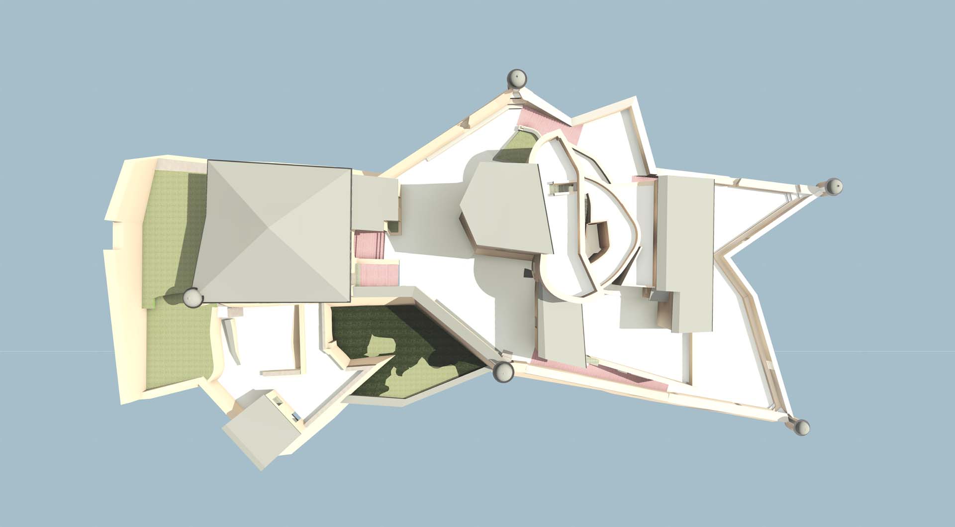 La modellazione di un edificio così complesso ed articolato richiede competenze avanzate nell’utilizzo dello strumento: la creazione degli oggetti parametrici è funzionale all’ottimizzazione dei tempi e viene gestita tramite famiglie di base che possono essere riadattate e perfezionate per rispondere a casistiche specifiche più articolate.